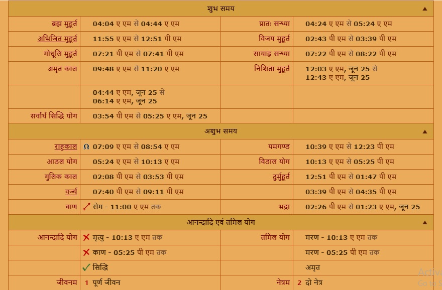 Aaj Ka Panchang 24 June