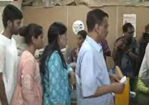 सीएम केजरीवाल पत्नी और पिता साथ पहुंचे सिविल लाइंस बूथ
