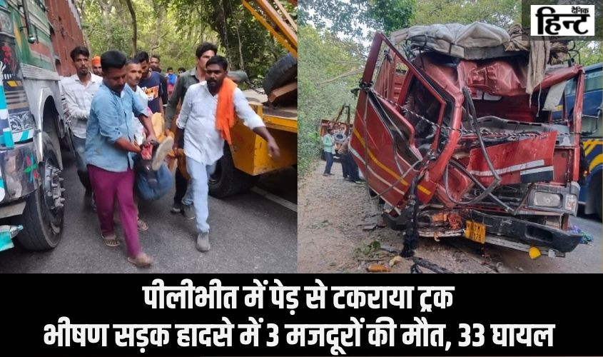 Pilibhit Road Accident : पीलीभीत में पेड़ से टकराया ट्रक, भीषण सड़क हादसे में 3 मजदूरों की मौत, 33 घायल