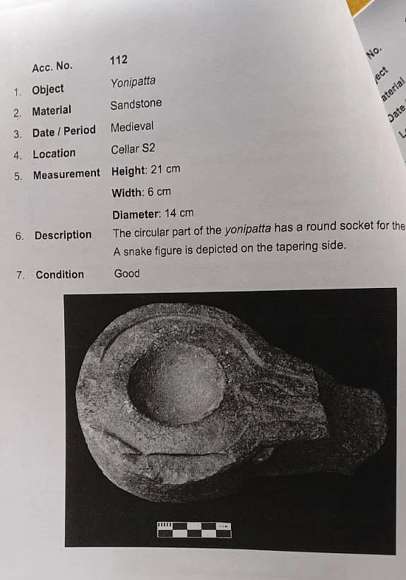 यह बलुआ पत्थर से बना एक योनि पट्टा है, जिसकी ऊंचाई 21 सेंटीमीटर, चौड़ाई छह सेंटीमीटर और व्यास 14 सेंटीमीटर है। इसमें एक नक्काशीदार साँप की आकृति है और यह सामने से क्षतिग्रस्त है।