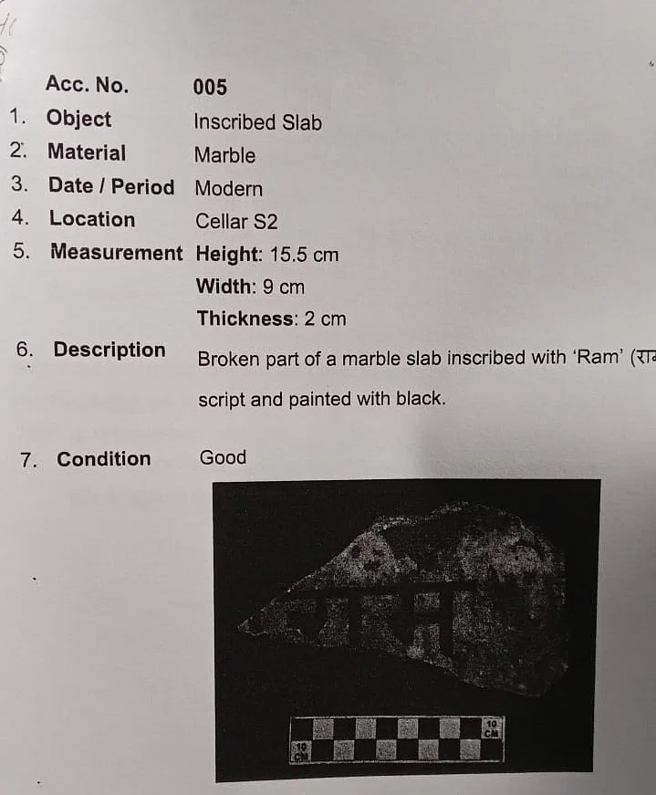 यह एक संगमरमर का स्लैब है जिस पर “राम” लिखा हुआ है। वर्तमान में, यह अच्छी स्थिति में है, इसकी लंबाई 15.5 सेंटीमीटर, चौड़ाई नौ सेंटीमीटर और मोटाई दो सेंटीमीटर है।