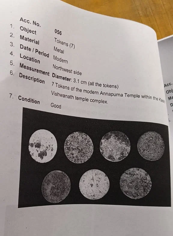 धातु से बने सात टोकन पाए गए, जिन्हें रिपोर्ट में आधुनिक बताया गया है, जिनका व्यास 3.1 सेंटीमीटर है।