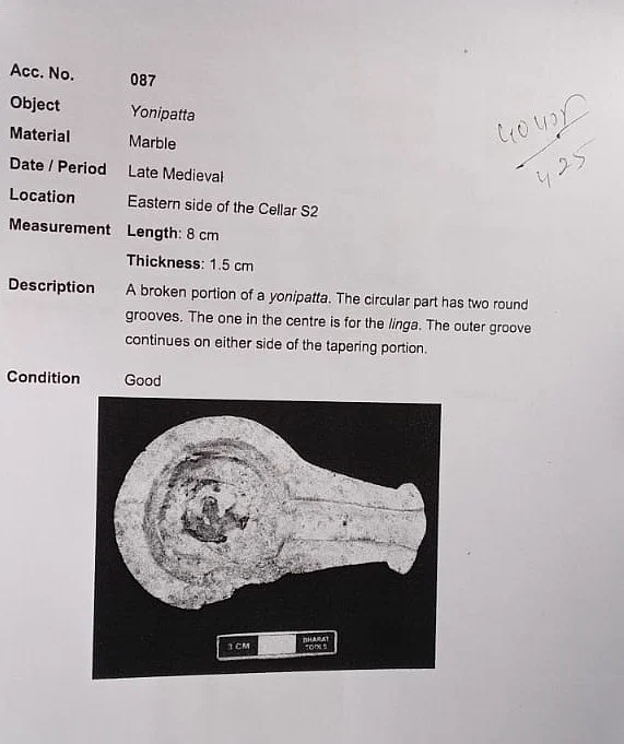 यह संगमरमर से बना योनि पट्टा है, जिसकी चौड़ाई आठ सेंटीमीटर और मोटाई 1.5 सेंटीमीटर है। लिंग मध्य से खंडित है।