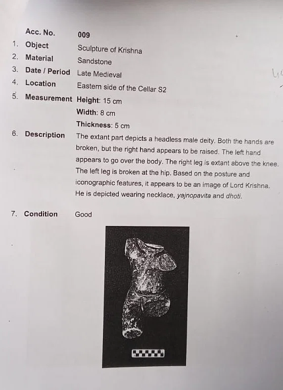 यह भगवान कृष्ण की एक क्षतिग्रस्त संगमरमर की मूर्ति है, जिसकी माप 15x8x5 सेंटीमीटर है। मूर्ति में सिर नहीं है और दोनों हाथ टूटे हुए हैं। दाहिना कंधा उठा हुआ है, और मूर्तिकला की पहचान इसकी संरचना के आधार पर भगवान कृष्ण का प्रतिनिधित्व करने के रूप में की जाती है।